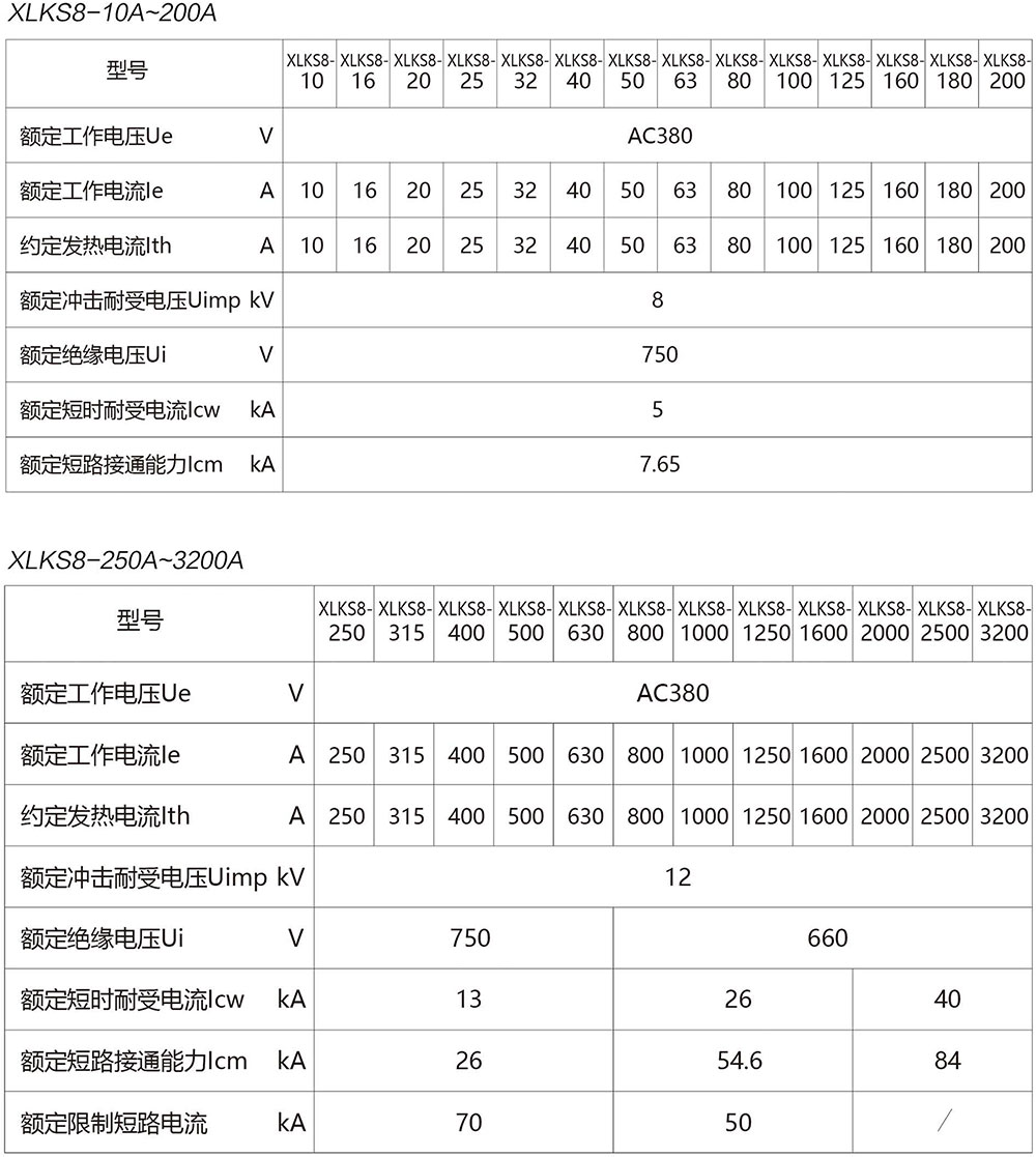 XLKS8系列触头可视化负荷隔离开关,适用于交流50Hz,额定电压380V,额定电流为10A~3200A,在工业配电系统中作接通与分断电路和作为隔离开关使用。相比于XLF8系列, XLKS8系列在开