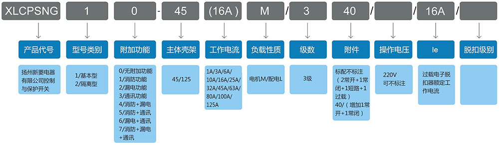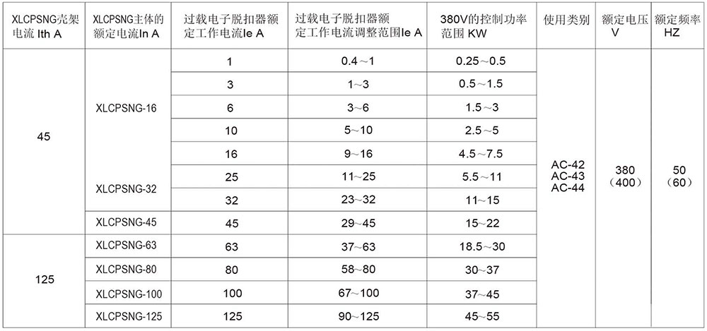 XLCPSNG系列控制与保护开关主要用于交流50HZ(60HZ)、额定电压至380V、电流自0.4A~ 125A的电力系统中接通、承载和分断正常条件下包括规定的过载条件下的电流,且能够接通、承载并分断规定的非正常条件下的电流(如短路电流)。